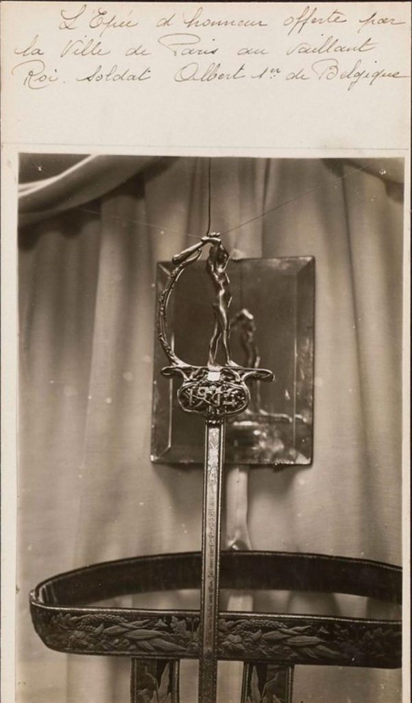 Ambas obras, la espada y el busto, son de Pierre Feitu, admirador ferviente del rey de los Belgas