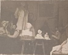 esta escena que se desarrolla Aparentemente en el taller de pierre feitu, desvela su temperamento fogoso y sus métodos de trabajo