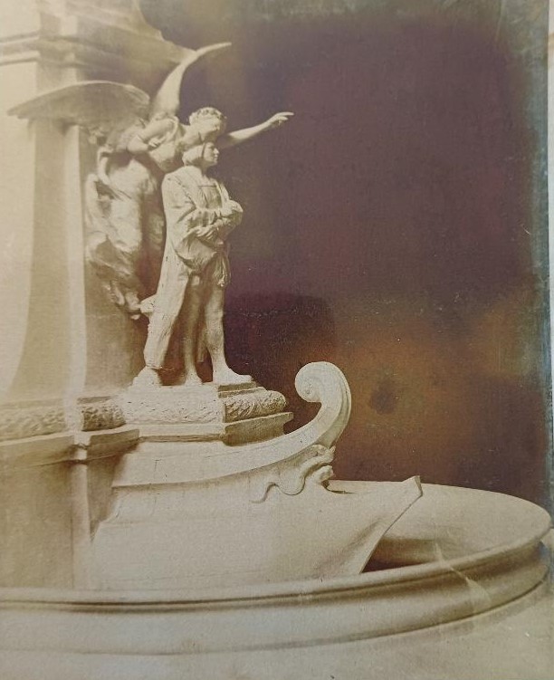 Inaugurado en 1905. Inicialmente, el monumento incluía una mujer drapeada, llamada Fame (la Celebridad), inscribiendo las palabras guarneciendo el pedestal de granito; tras ser vandalizada, esa figura fue retirada y almacenada.