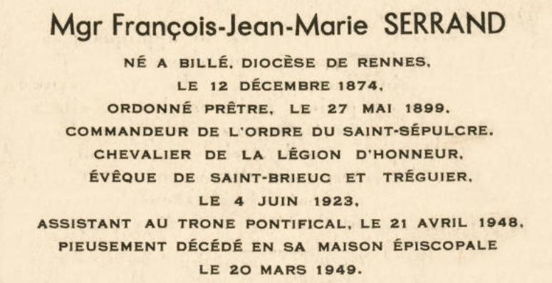 Monseigneur François-Jean-Marie Serrand (pictured below)